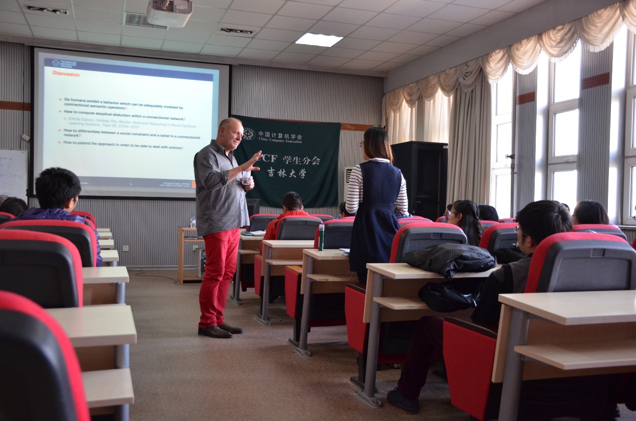 知识表示与知识推理是智能信息处理的基础,在计算机科学的众多领域有着广泛应用。2014年11月3日至4日,受伟德国际1946集团计算机公司副经理欧阳继红教授、计算机研究所副所长梁艳春教授的邀请,德国德累斯顿工业大学Steffen Holldobler教授来到公司为同学们做了知识表示与知识推理系列的学术报告。