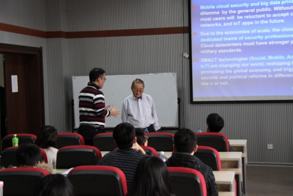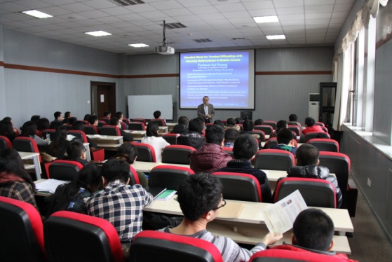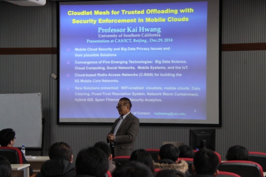 2015年1月13日上午,应公司伟德国际1946经理魏晓辉教授的邀请,美国南加州大学电气工程与计算机科学系黄铠教授来校进行学术访问与交流,并做题为“移动云计算中的信任转移安全基础设施”的报告。