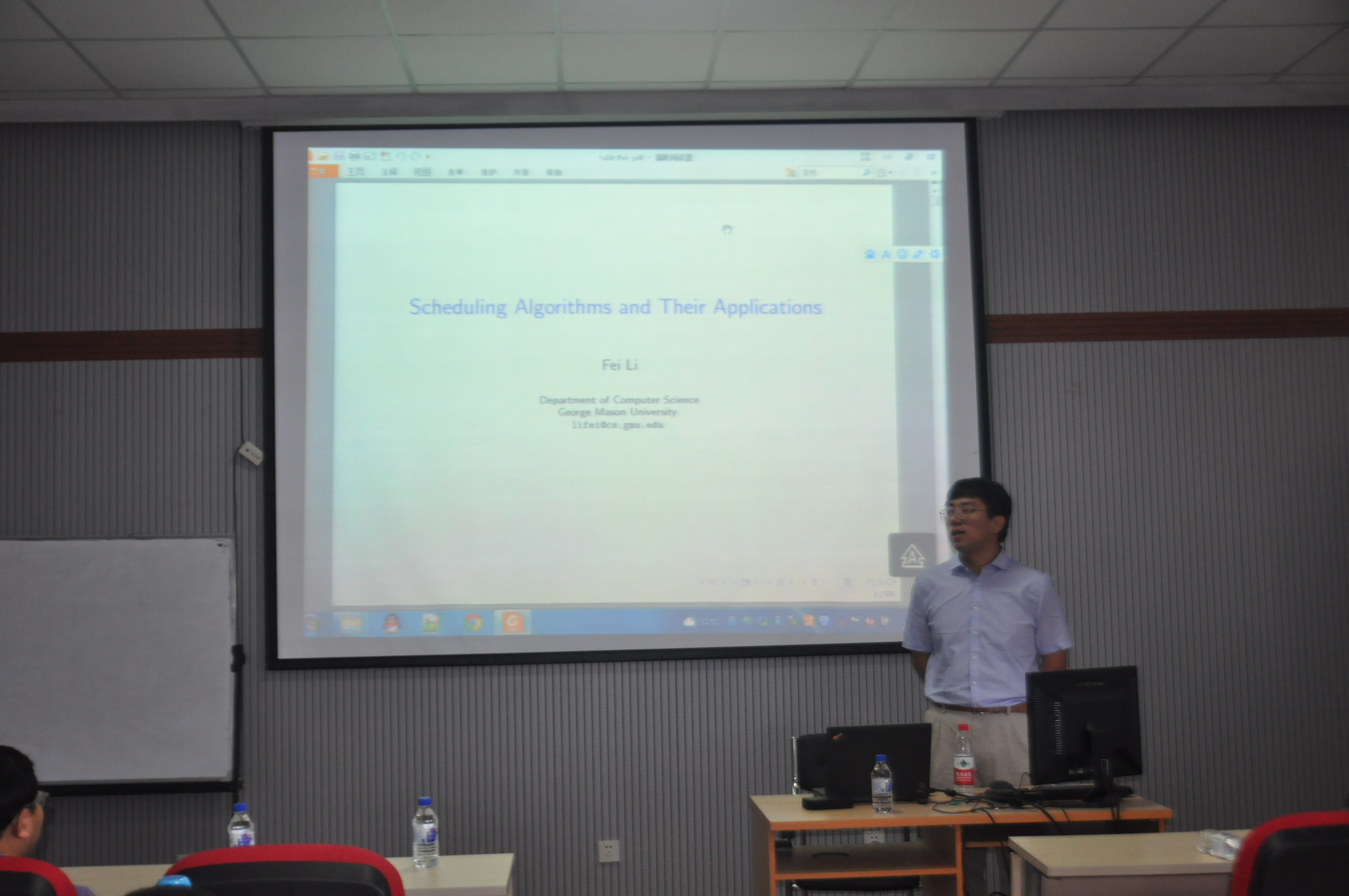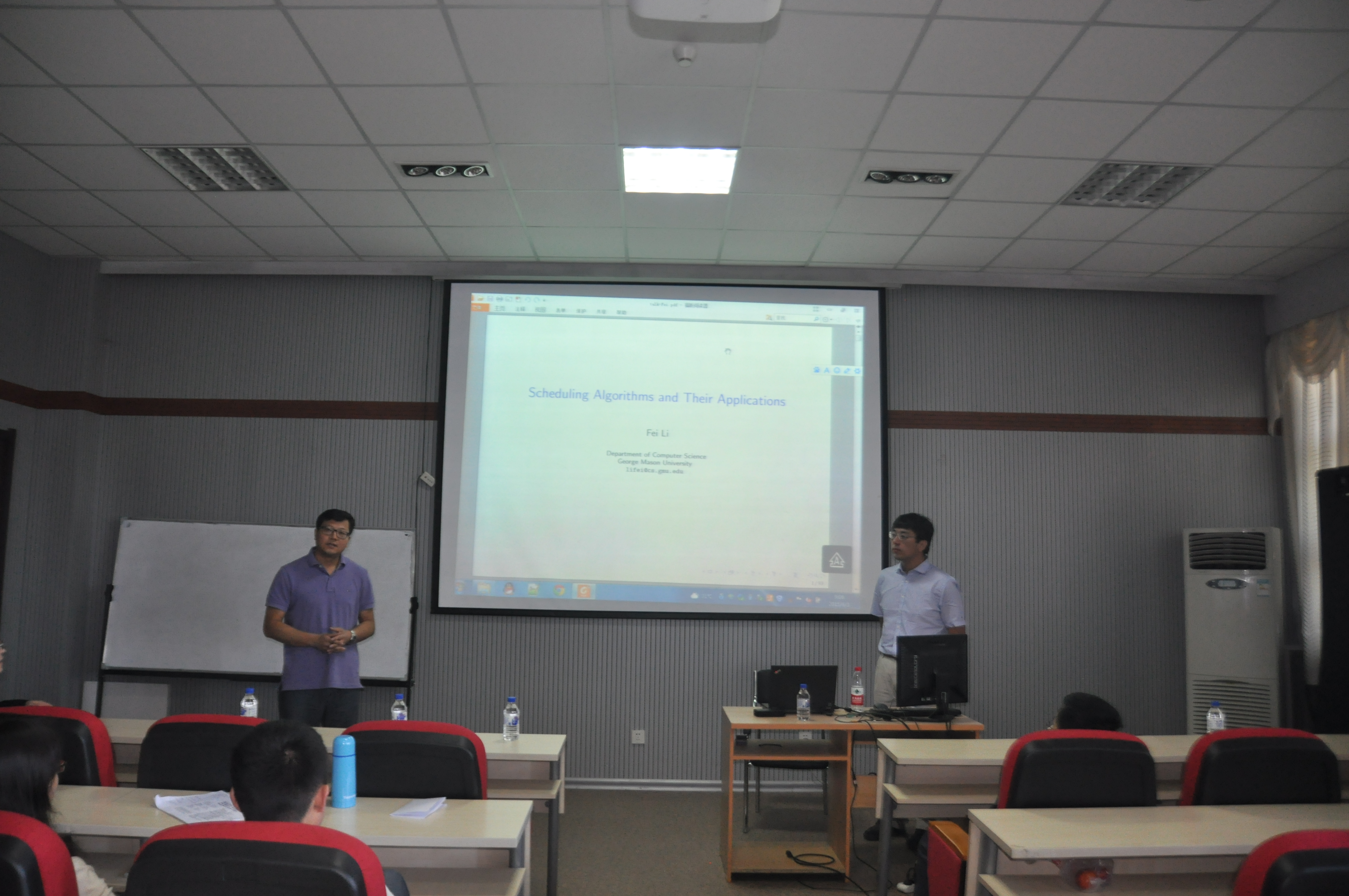 乔治梅森大学李菲教授应伟德国际1946的邀请,于2015年6月3日上午,作了题为“Scheduling Algorithms and Their Applications”的学术报告。报告由计算机公司杨博教授主持。