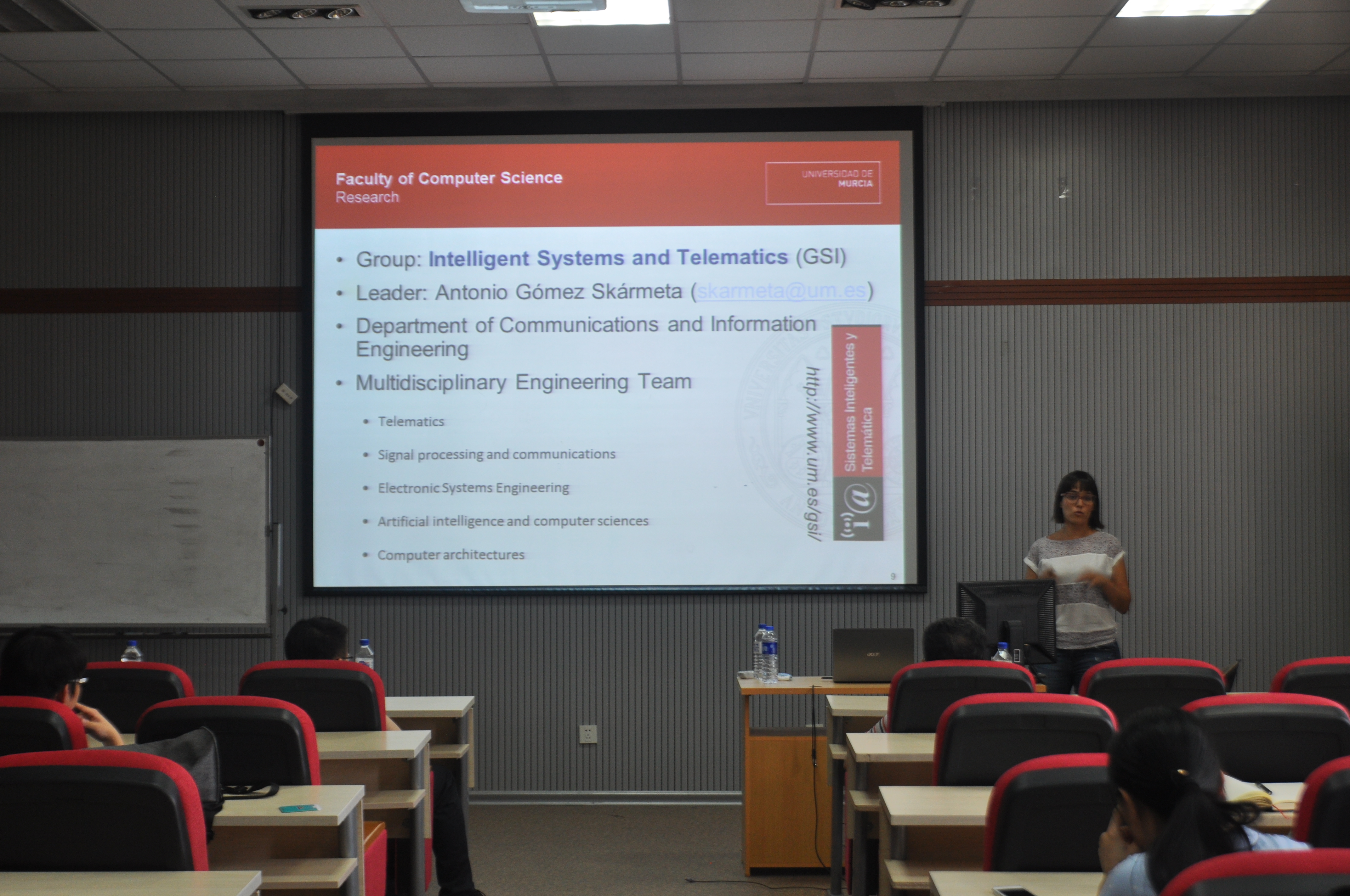 2016年6月14日下午3:00,Victoria Beltra博士为计算机公司的师生作了题为“A platform towards IoT interoperability and security in smart cities”的学术报告。Victoria Beltran博士是University of Murcia的资深研究员,先后在哥伦比亚大学、贝尔实验室等研究机构工作,在电信研究方面有着丰富的实践经验。