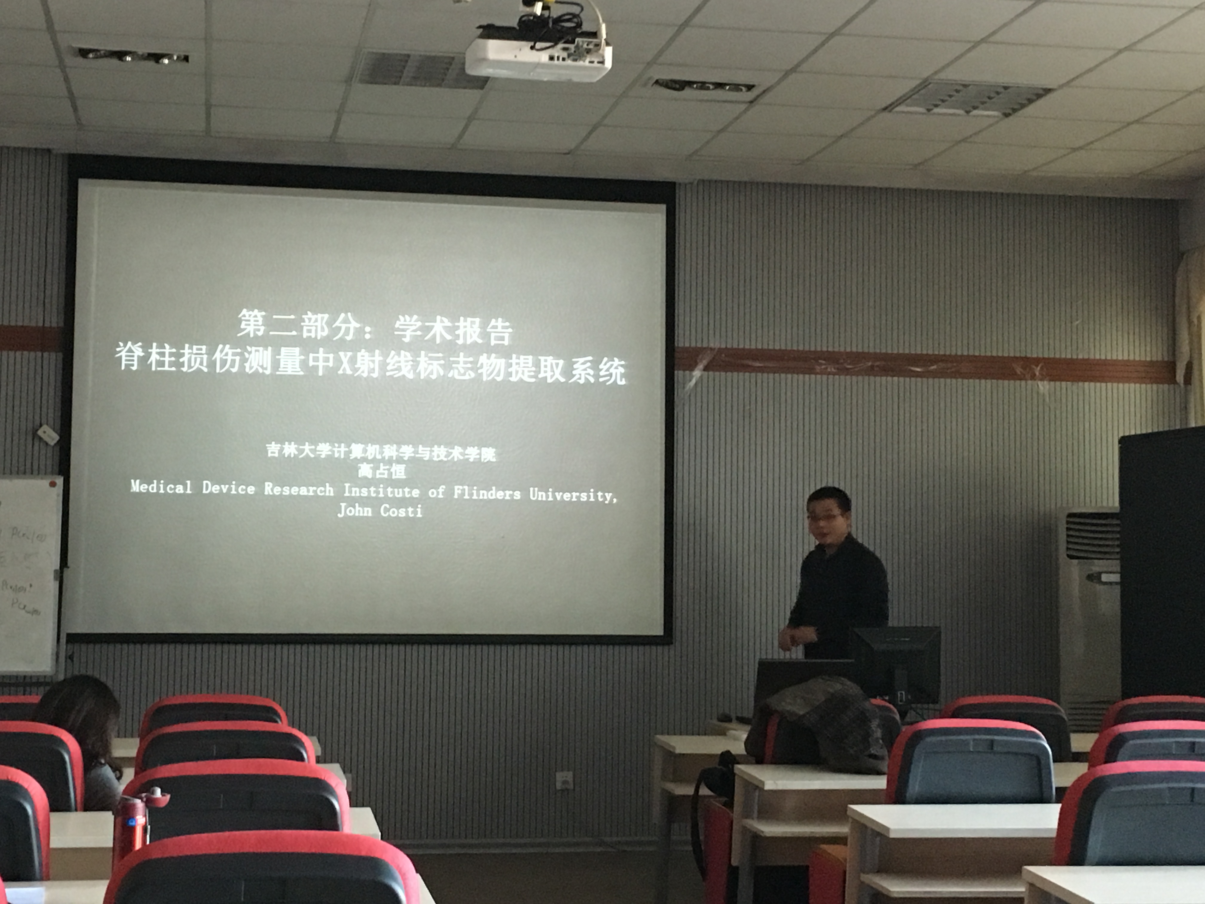 2016年11月24日上午,伟德国际1946集团计算机公司高占恒副教授在计算机公司做了题目为“脊柱损伤测量中X射线标志物提取系统”的学术报告。报告主要介绍了高占恒副教授在澳大利亚从事访问学者期间,取得的一系列关于脊柱损伤测量中X射线标志物数字化的研究结果。报告中,高占恒副教授首先介绍了澳大利亚的工作、生活情况,然后介绍了脊柱损伤问题的定义、目前解决方案、本人在访学期间做的工作,着重介绍了其在访学期间研发的一款半自动X射线标志物数字化软件WireDig,包括软件的功能、特点,以及与原有软件相比的优势。