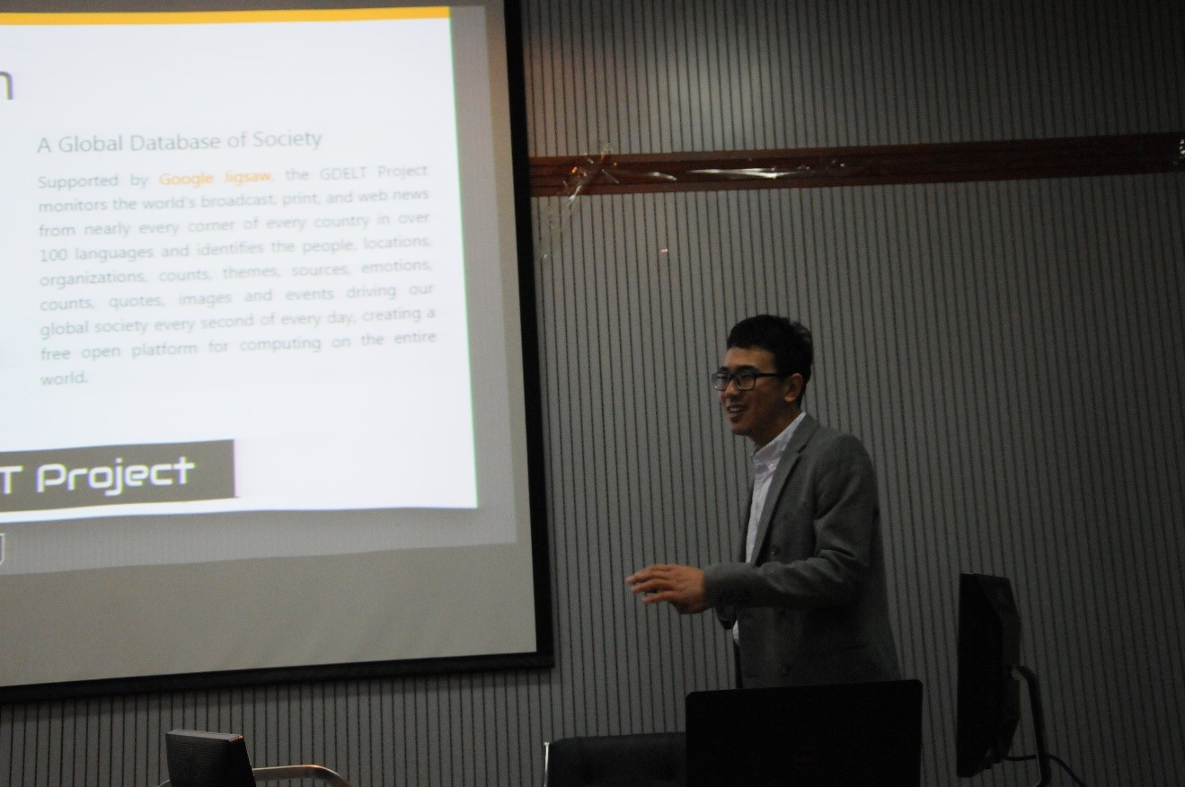 报告最后,韩霄松老师与现场师生进行了探讨交流,就新闻大数据挖掘的方法,应用等问题进行了热烈的讨论