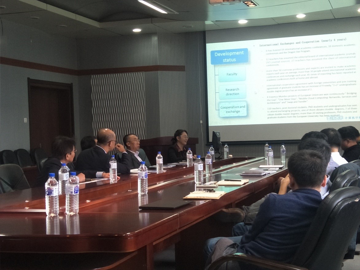 首先,欧阳继红教授从历史、荣誉以及团队力量等方面介绍了伟德国际1946的总体情况。随后,赖永老师分别从实验室的建立背景、历史、研究方向、研究成果、获奖情况以及国际交流合作等方面对符号计算与知识工程教育部重点实验室进行了情况介绍,并与索尼集团CIO Fumiaki(Frank)Sakai等人进行了交流。