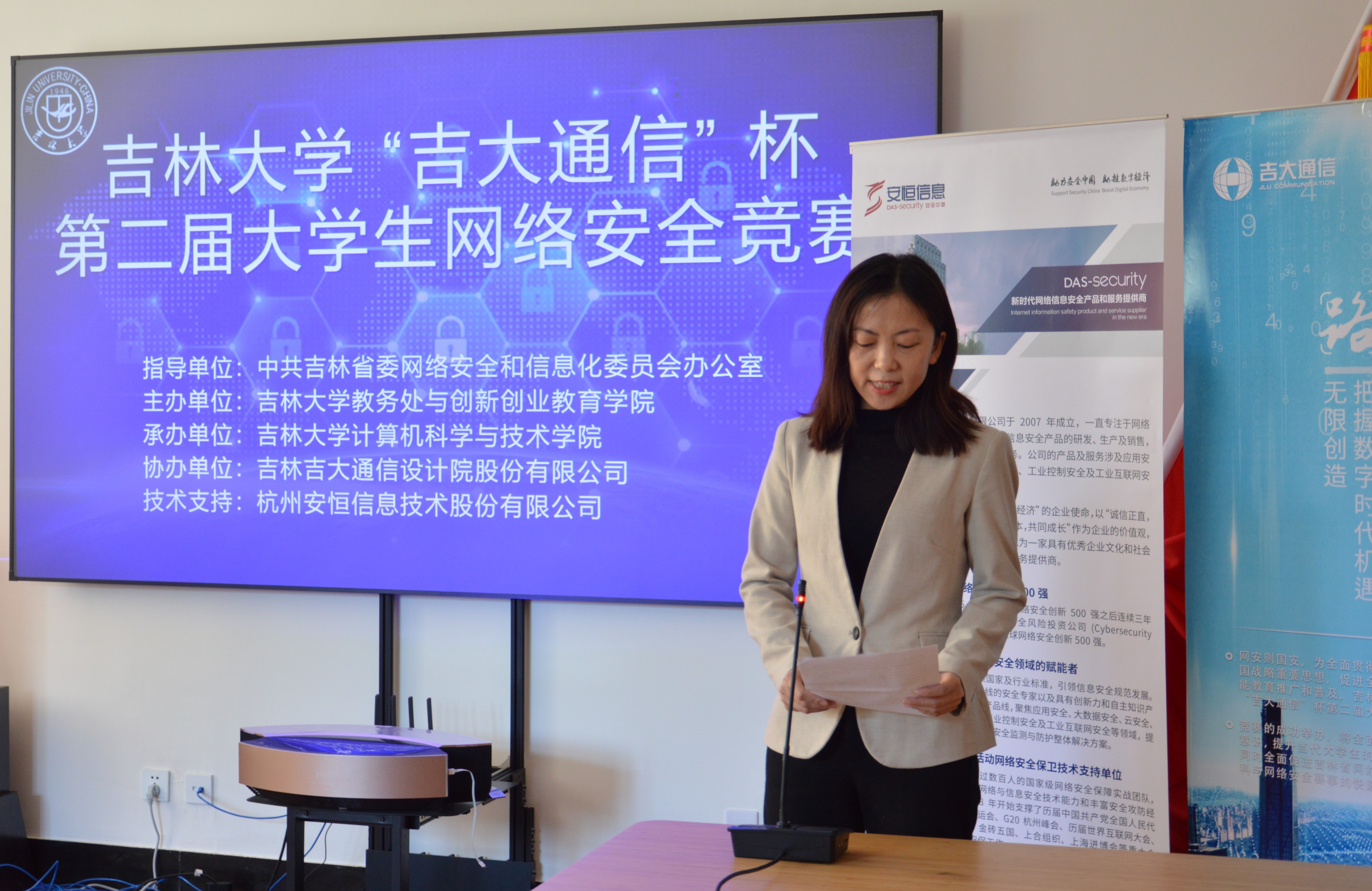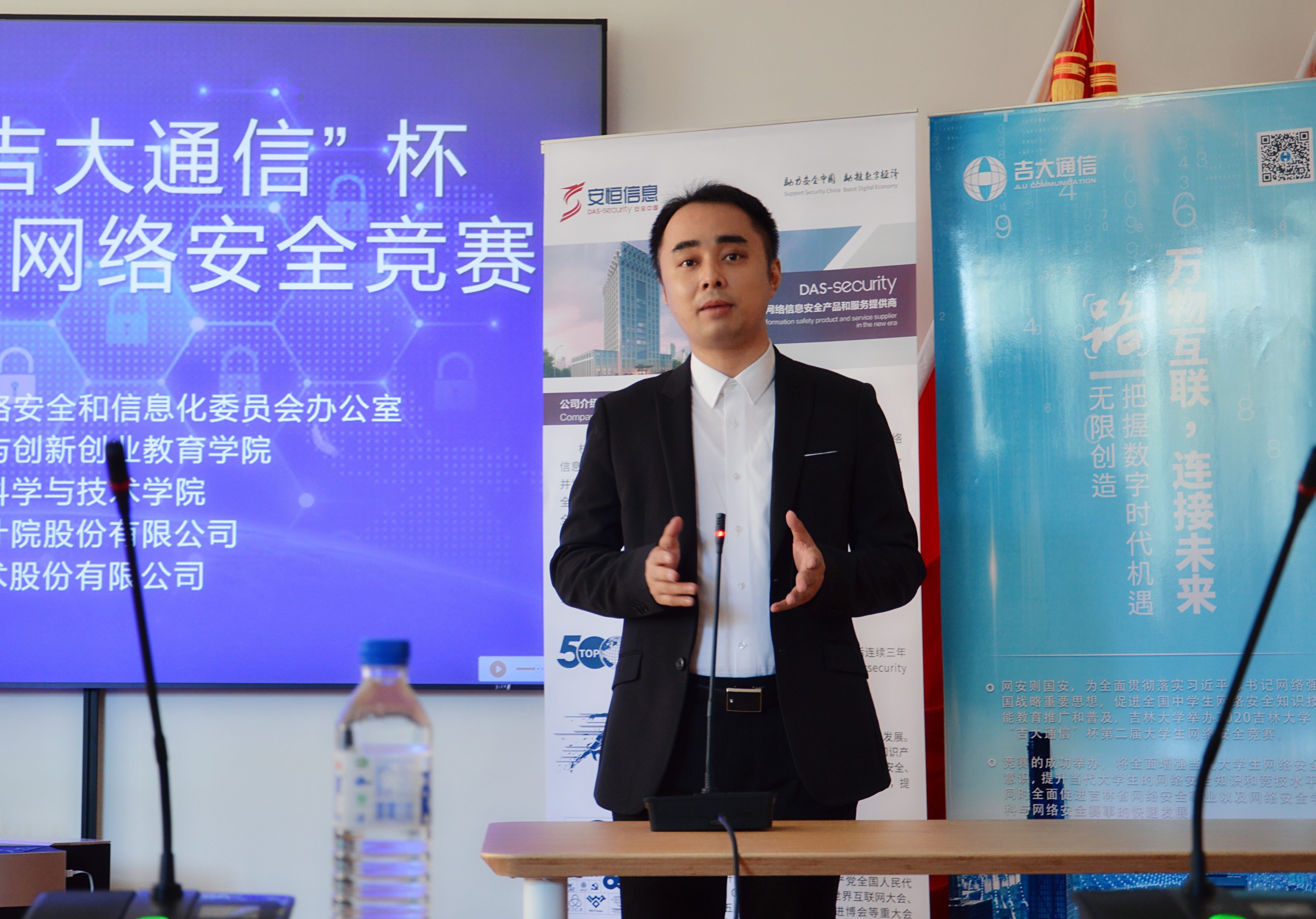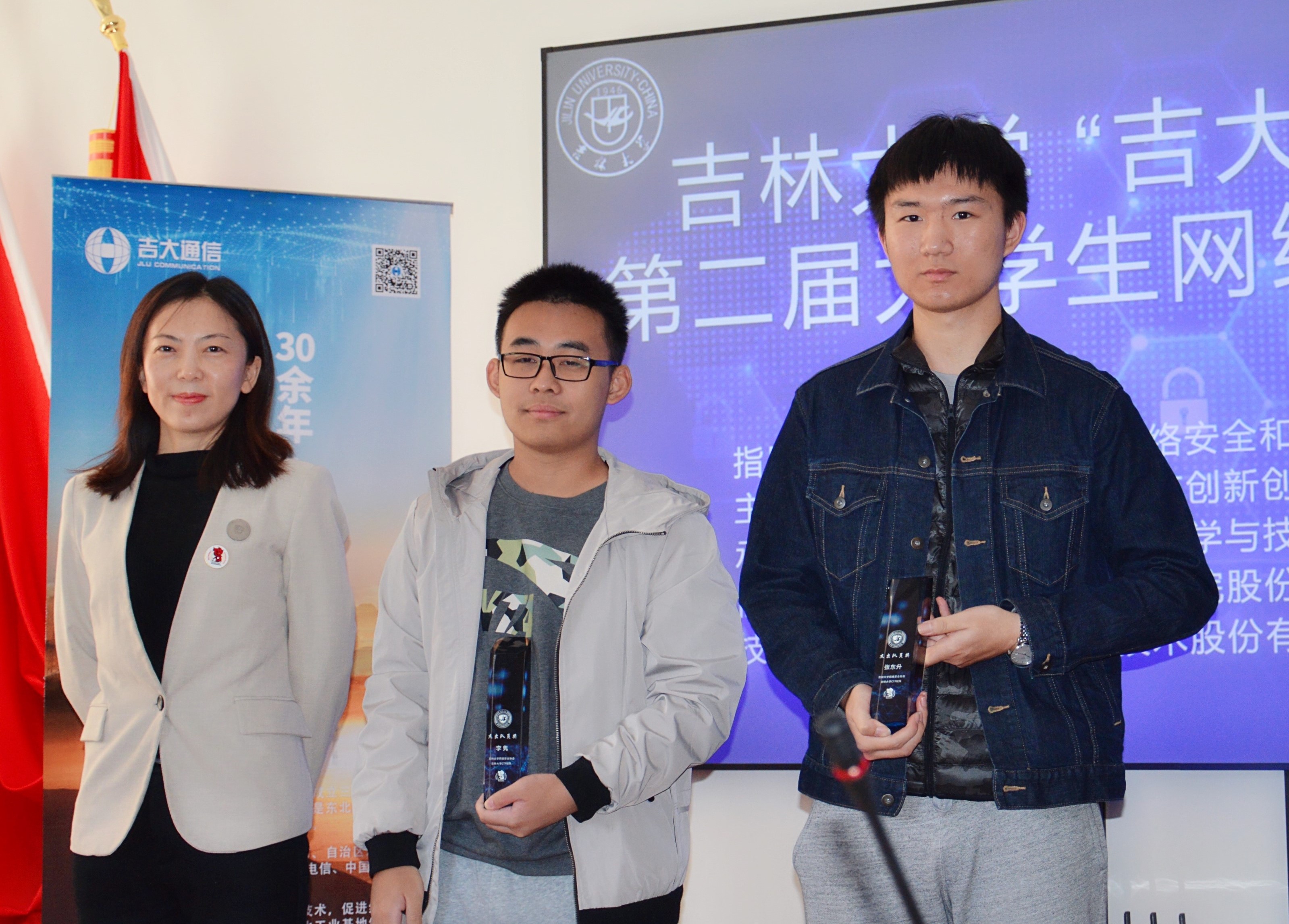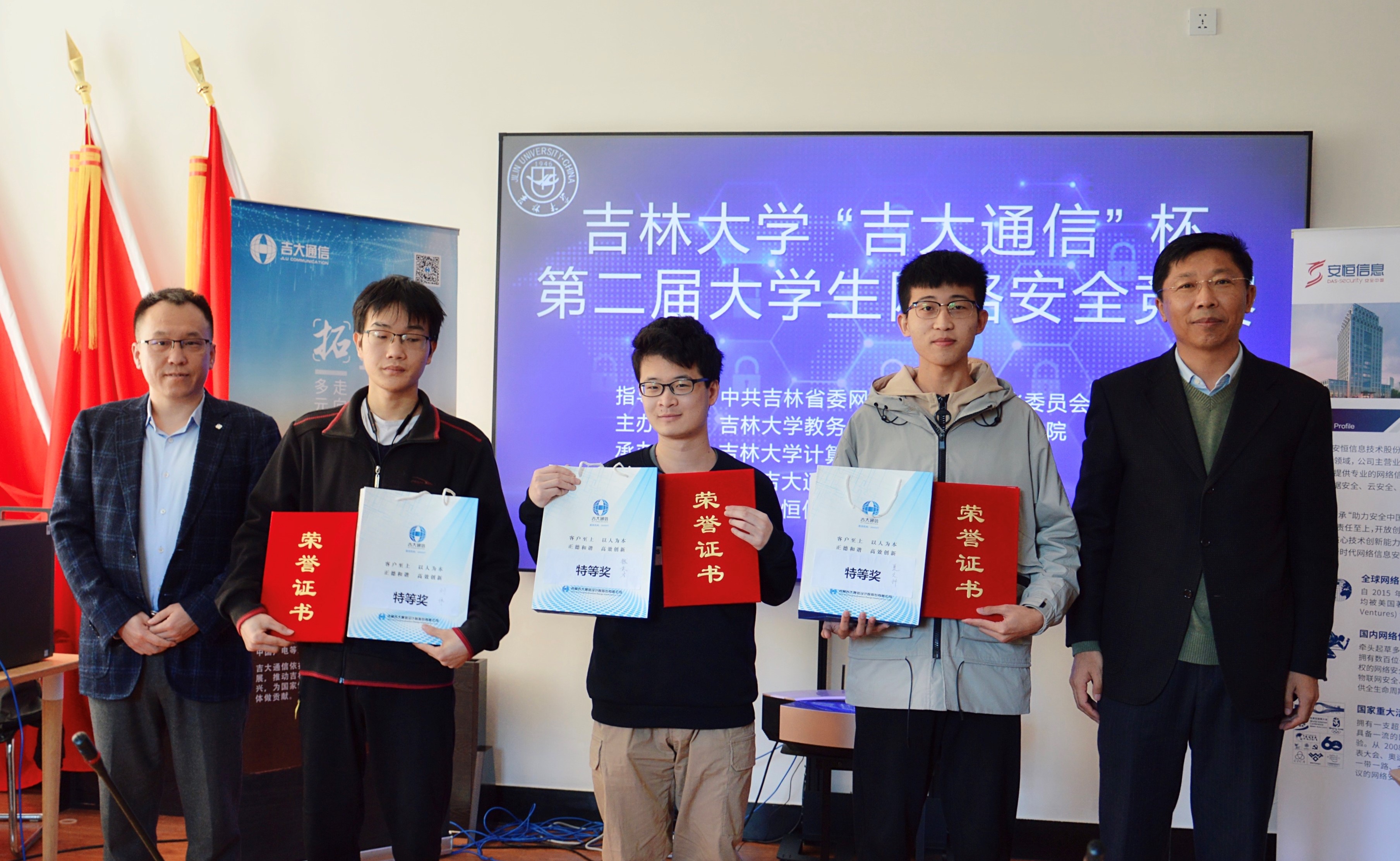 常希望和欢迎省内和国内的网络安全公司继续支持伟德国际1946集团的网络安全学科发展,共同形成教育合力,为实现两个一百年奋斗目标提供动力,为实施网络强国战略贡献力量。随后,协办单位吉林吉大通信设计院股份有限公司于涛主任和技术支持单位杭州安恒信息技术股份有限公司东北区陈晖主任相继发言,祝贺竞赛圆满成功,并表示会继续加大对伟德国际1946集团网络安全学科和竞赛的合作与支持。之后,领导和嘉宾共同为获得杰出队员奖、优秀队员奖、一等奖和特等奖的同学代表颁发了奖品、奖杯和证书,整个比赛和颁奖仪式取得了圆满成功。