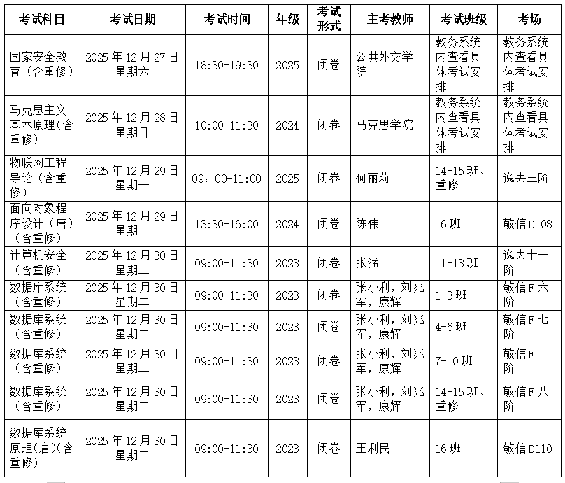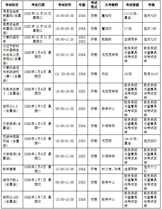 公共课的考试安排以公司通知及教务系统为准,请同学们及时查看(https://iedu.jlu.edu.cn/)。
