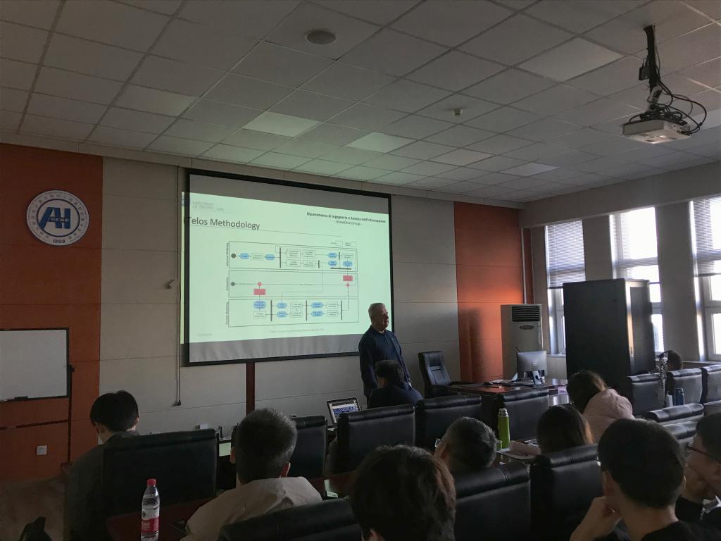 在报告中,Fausto教授介绍了对世界中的同一个实体的描述的多样性。Fausto教授的报告结构清晰,首先提出一系列的问题,即对于世界上的知识,没有先验的、通用的协议;然后提出问题的影响,比如对于知识整合(本体,schema)、数据集成、联邦学习等问题的影响;第三,提出问题的解决方案--iTelos方法,并介绍了其主要步骤和理论基础。介绍了知识图谱的概念以及各大通用知识图谱的共同功能性特点,解决特定领域知识多样性等问题。当今的知识图谱有一个共同的跨领域的目标,而且不能用于浏览大量的稀疏的、多样的、细粒度的面向应用的跨领域的数据。报告最后,Fausto教授悉心解答到场师生的提问,本次报告受到了广大师生的一致好评。