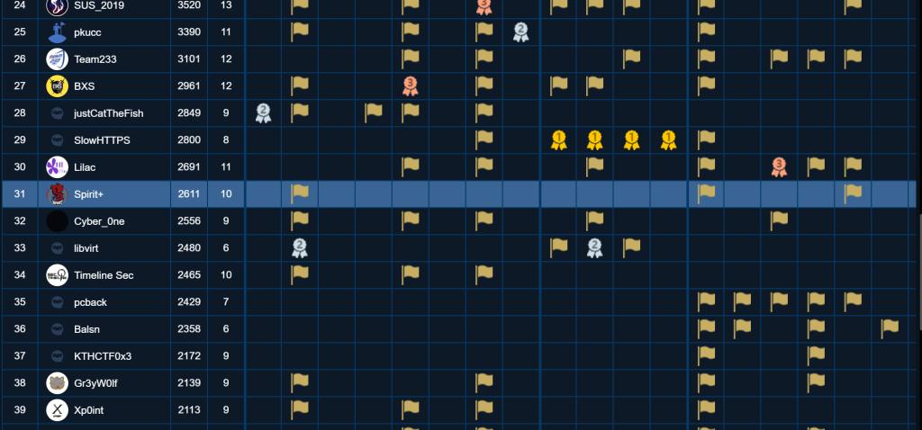 大赛由XCTF联赛的合作单位De1ta战队组织、赛宁网安提供技术支持,来自全球的755支队伍参加了本次大赛。公司员工组成的队伍夺得第31名,共解出10题,获得2611分,排进了前4%。值得一提的是,本次比赛中排名第一、第二的队伍同时也是世界排名第一、第二的队伍,虽然目前我们之间还存在很大差距,但是这也代表着公司员工开始从国内走出,逐渐走向世界级的比赛,这对公司员工的能力和信心都有很大的提升和鼓舞,胜不骄败不馁,在与世界一流队伍的对抗中磨砺斗志,积累比赛经验,也为以后的各级比赛打下了坚实基础。