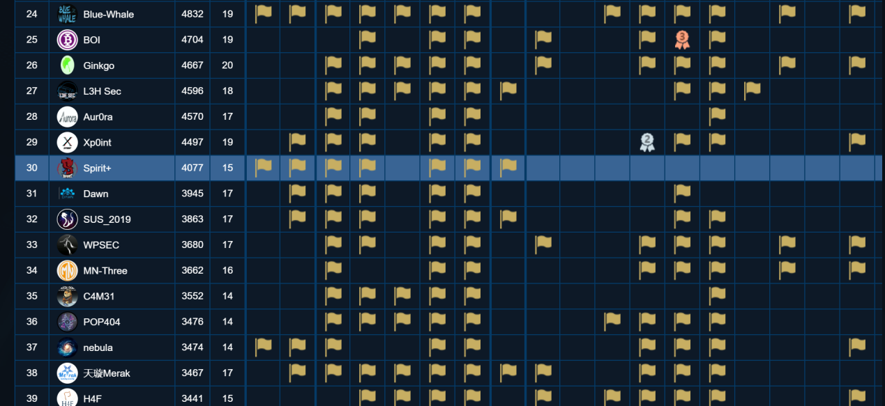 大赛由中国网络空间安全协会、中国网络空间安全人才教育联盟、XCTF联赛联合32所高校发起组织,由32所高校战队命题,赛宁网安提供技术支持,采用在线网络安全夺旗挑战赛的形式,面向全国开放。来自伟德国际1946和其他公司的8名员工组成的Spirt+战队在此次比赛中成功解出15道题目,获得4077分,在705支参赛队伍中取得了第30名的成绩,排进了前5%,对各个题型都有不同程度的突破。