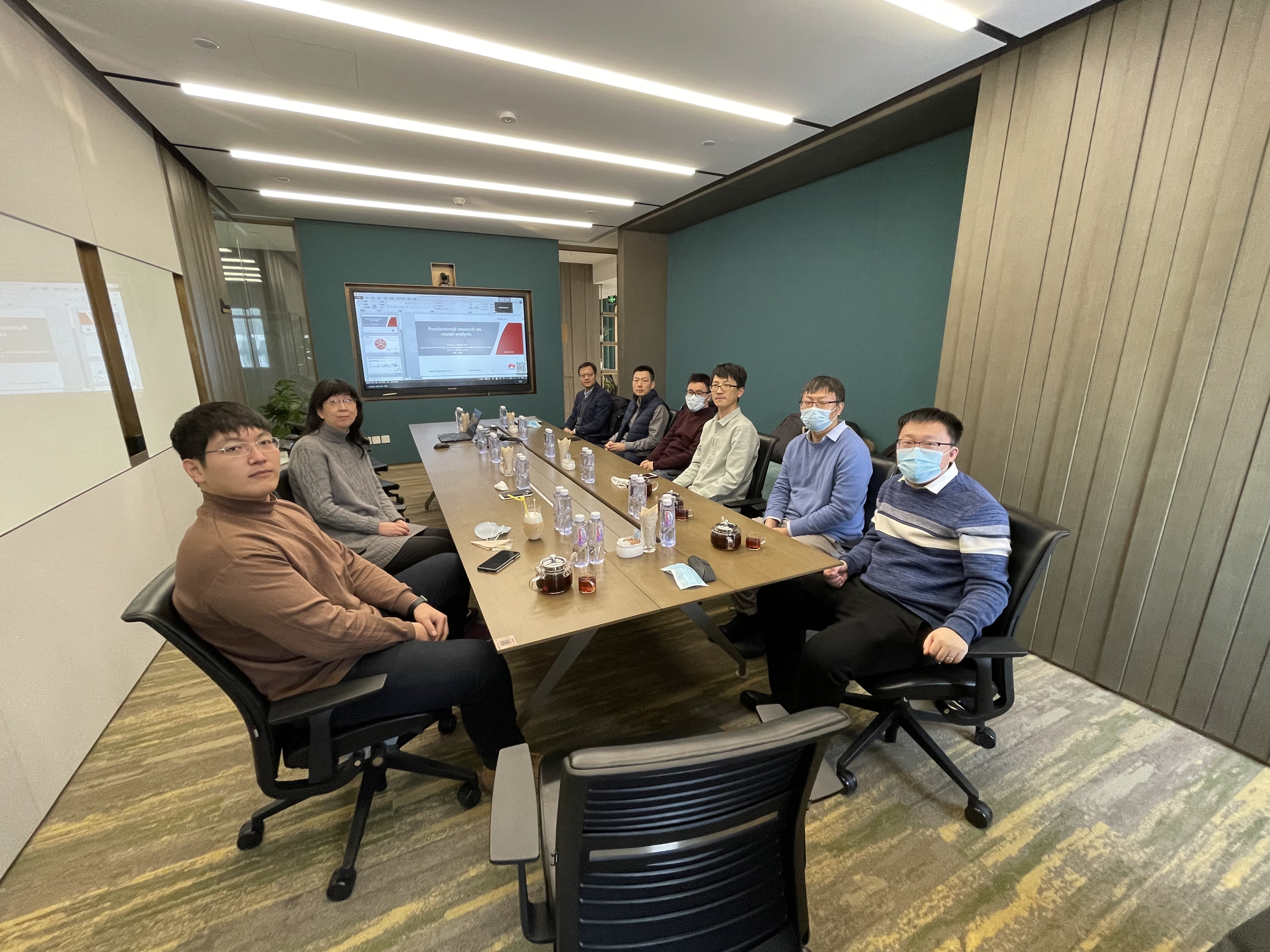 2021年2月1日,公司部分教师与华为公司相关实验室召开线下线上混和技术研讨会,线上参会公司师生和华为公司技术专家达170人。华为公司技术专家就“因果学习研究成果分享”、“强化学习研究成果分享”、“服务实验室业务和关键技术方向介绍”、“Dnet: 基于D硬件在环的神经网络架构搜索与模型库构建”等题目作了技术报告。公司牛砚副教授作了题为“面向低算力ISP的快速高精度De-Bayer及光流计算”的报告,李熙铭副教授作了题为“监督信息受限的文本分析方法”的报告,孙庚副教授作了题为“无线网络分布式协作通信的智能优化方法”的报告,徐原博博士作了题为“基于区域的时空数据下可解释兴趣点推荐方法”的报告,王恩教授作了题为“移动群智感知中的用户选择问题:从离线到在线场景”的报告,管仁初教授作了题为“复杂关系抽取与认知图谱应用”的报告,赖永副教授作了题为“知识编译:一种有效的推理方法”的报告。