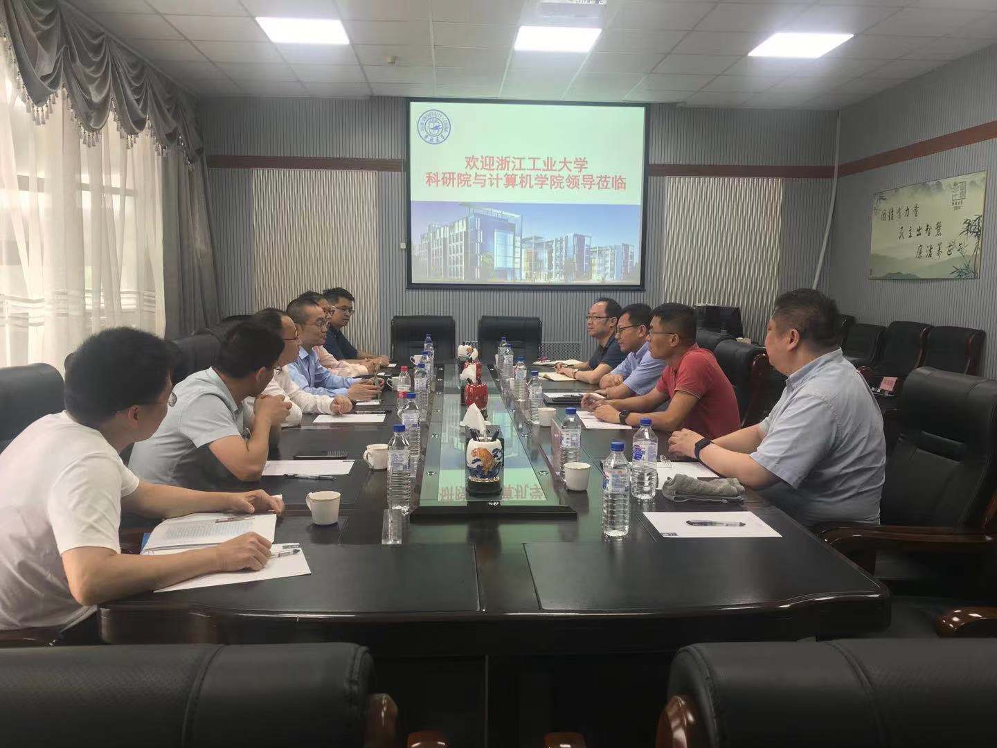 带队领导浙江工业大学科研院副经理王剑斌与伟德国际1946副经理沈国江教授介绍了近年来浙江工业大学计算机学科的建设情况和科研管理措施。伟德国际1946集团科研院科技管理办公室副主任郭庆、伟德国际1946公司经理杨博教授、副经理李强教授、副经理王喆教授参与了本次调研活动,对来访领导和教师表示了热烈的欢迎,介绍了伟德国际1946集团计算机学科的建设情况。