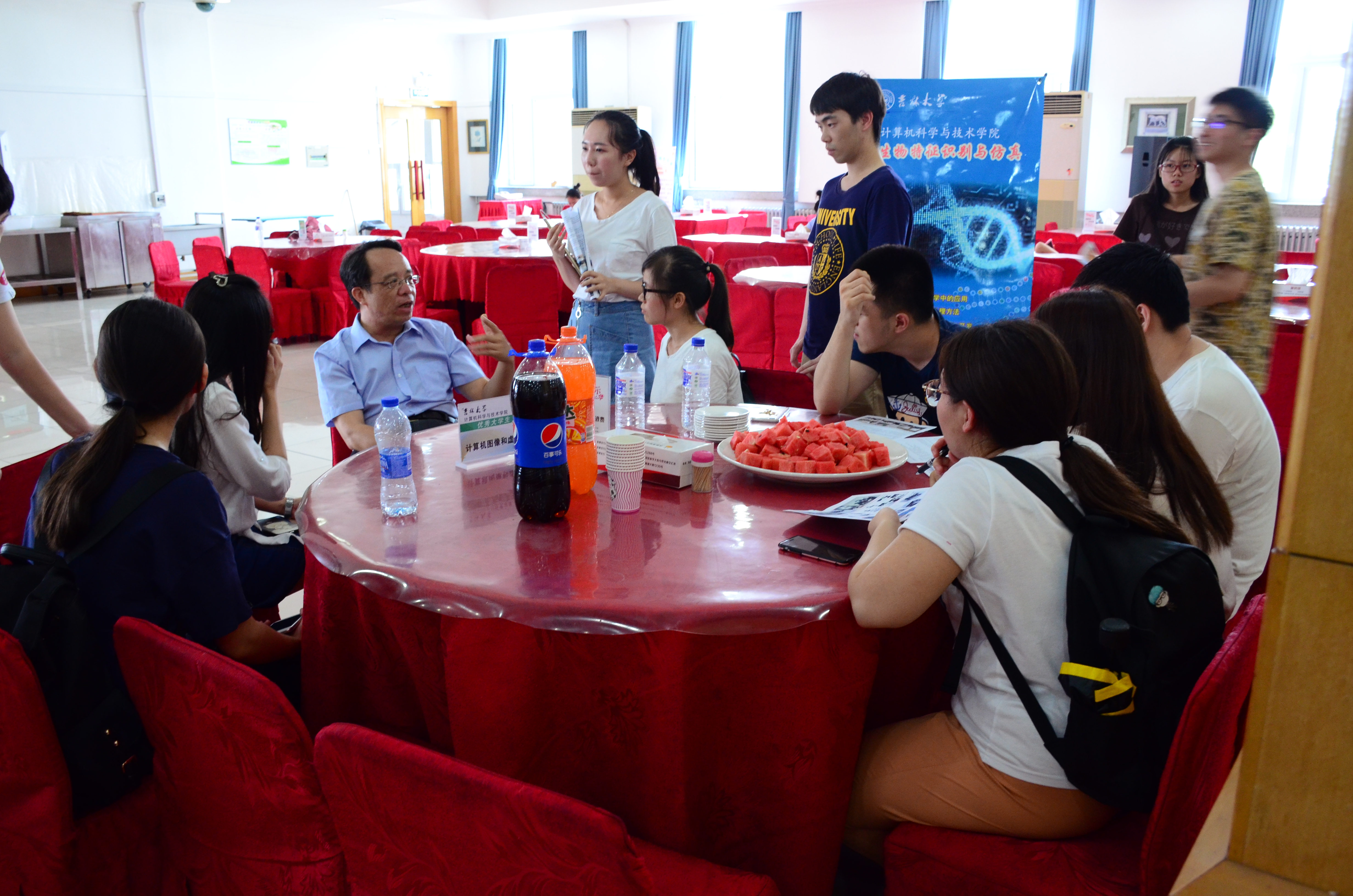 9日下午,组委会组织公司教师与营员开展了导师见面会活动。导师见面会采取圆桌形式,同学们分散到各梯队与自己仰慕的导师坐在一起交流、沟通,更加详细了解导师的研究方向和内容。这种形式深受营员欢迎,不仅能够充分了解自己感兴趣的专业方向和科研领域,还能通过与导师面对面的交流,深切感受到来自各位老师独特的人格魅力。大部分营员通过这次见面会明确了自己攻读研究生的专业方向,也选定了自己的研究生指导教师。