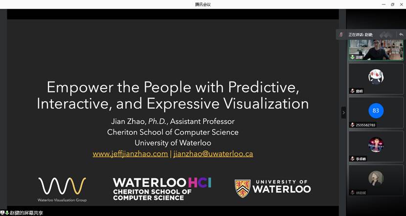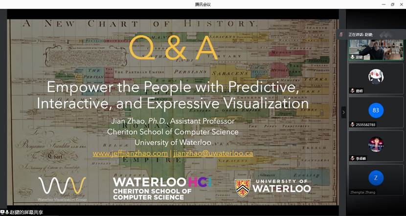 2021年9月29日上午,加拿大滑铁卢大学赵健老师应伟德国际1946邀请,为公司师生作了题为“Empower the People with Predictive, Interactive, and Expressive Visualization”的线上学术讲座。