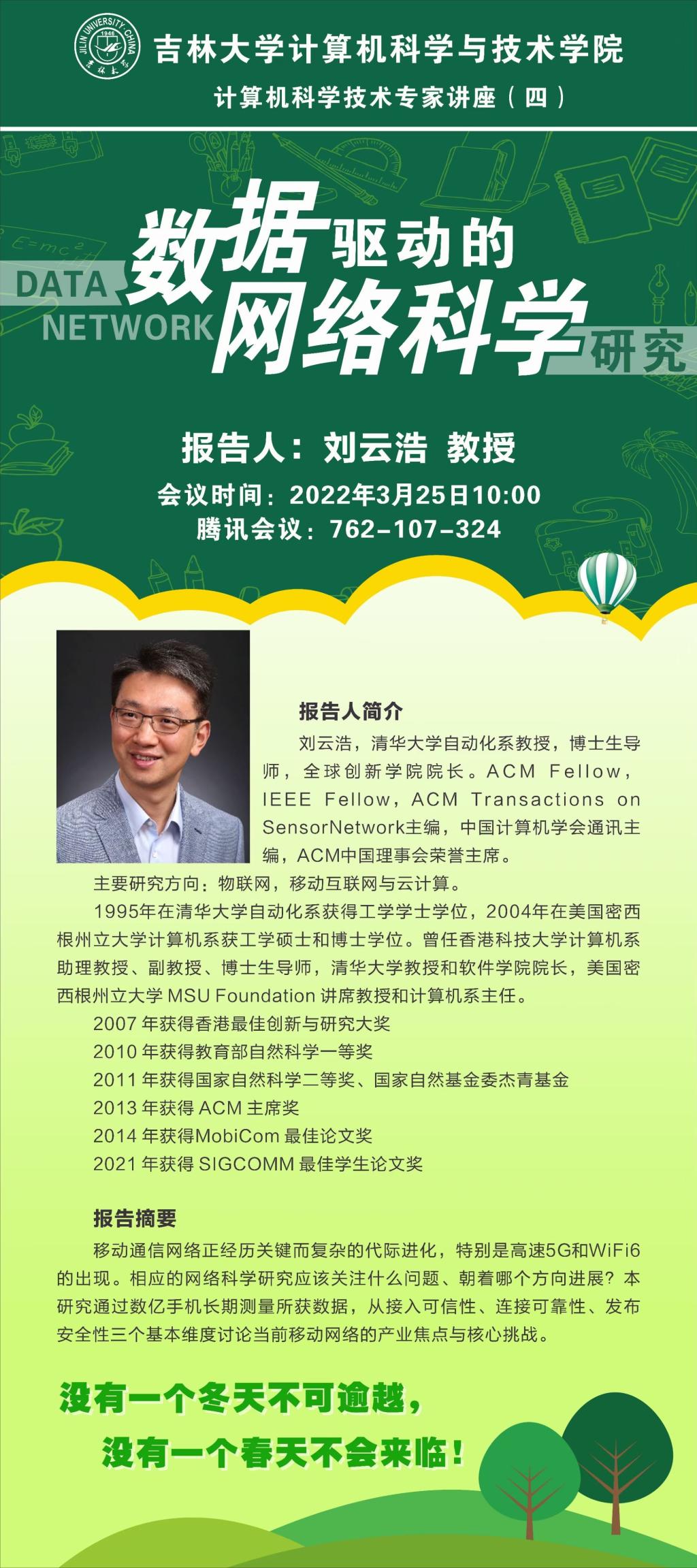 2022年3月25日10:00,清华大学刘云浩教授应伟德国际1946邀请,利用腾讯会议作了题为“数据驱动的网络科学研究”的学术报告,也是计算机科学技术专家系列讲座的第四场。伟德国际1946、软件公司经理杨博教授主持了讲座,杨经理代表公司全体师生对刘云浩教授在伟德国际1946集团抗击新冠疫情特殊时期应邀做专场讲座表示由衷地感谢。计算机公司、软件公司300余名师生在线参加了此次活动。