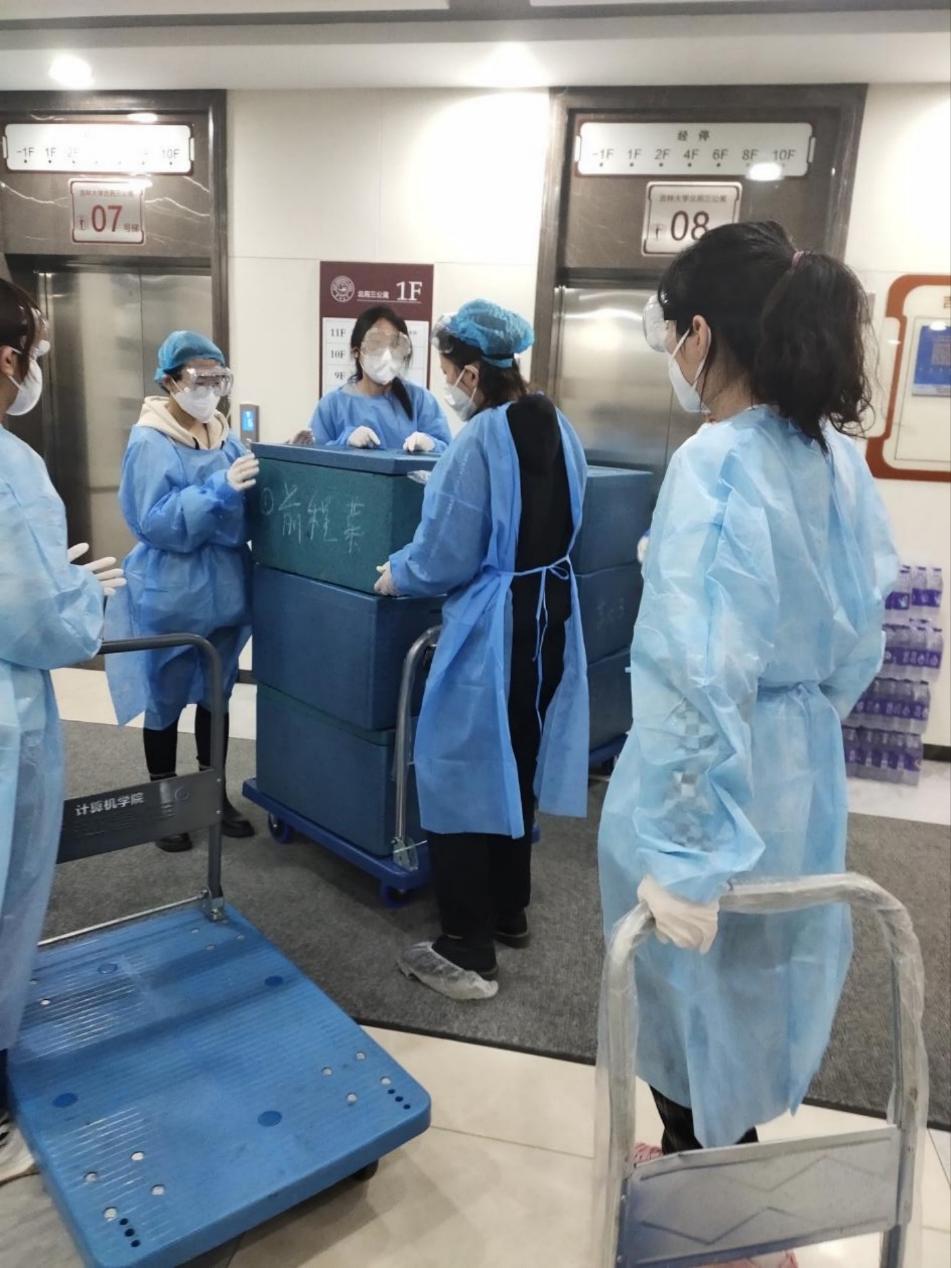 在线下活动中,各位党员同志们积极参加到对应楼层的志愿工作中,主动承担起服务同学们的工作。同学们在做好防护的前提下,井然有序的运输并分发午餐和矿泉水,并为每一位同学配发了酸奶和维生素泡腾片。通过各位党员同志的团结协作,平日中枯燥辛苦的工作很快就结束了。同学们纷纷表示通过志愿服务,自己的内心得到了满足感和自豪感,同时也更加理解了作为志愿者的辛苦。