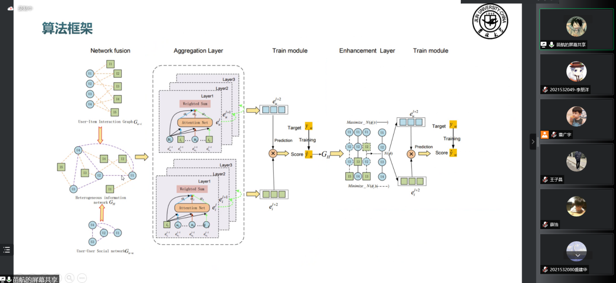 本期邀请了2019级硕士生苗航和张梦玺进行学术分享。他们分享的主题分别是“推荐系统”和“Github社区信息挖掘”。本次沙龙活动旨在通过学术分享,拓宽研究生学术视野,促进同学之间的科研交流。活动由伟德国际1946研究生会干事王子昌主持,以腾讯会议的方式线上举行。