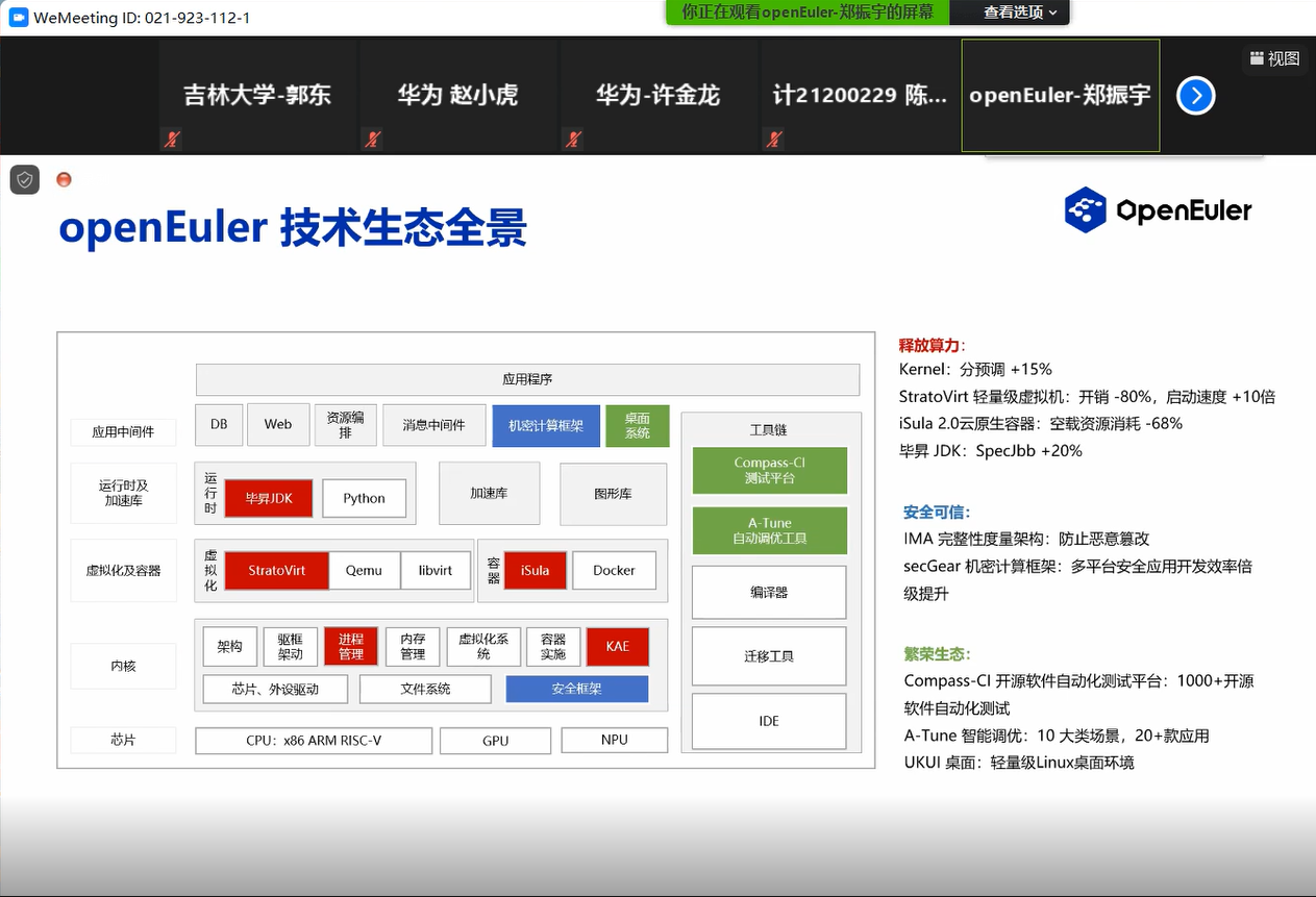 2022年7月2日-3日,《openEuler 开源创新实践课》线上实践教学阶段顺利举行。计算机公司副经理张永刚教授、软件公司副经理周柚教授先后主持了两次线上课程,对华为公司及三位工程师应邀为伟德国际1946集团学子做线上创新实践教学表示了由衷的感谢,并鼓励同学们努力学习、锐意进取、勇于创新。