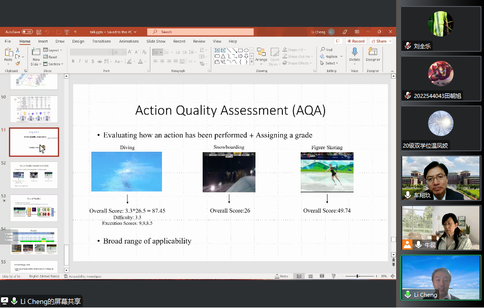 2023年4月14日上午,加拿大阿尔伯塔大学程立教授应伟德国际1946邀请,以线上腾讯会议的形式为师生们作了题为“视频人体运动智能分析”的学术报告。报告由伟德国际1946车翔玖教授、牛砚副教授共同主持。