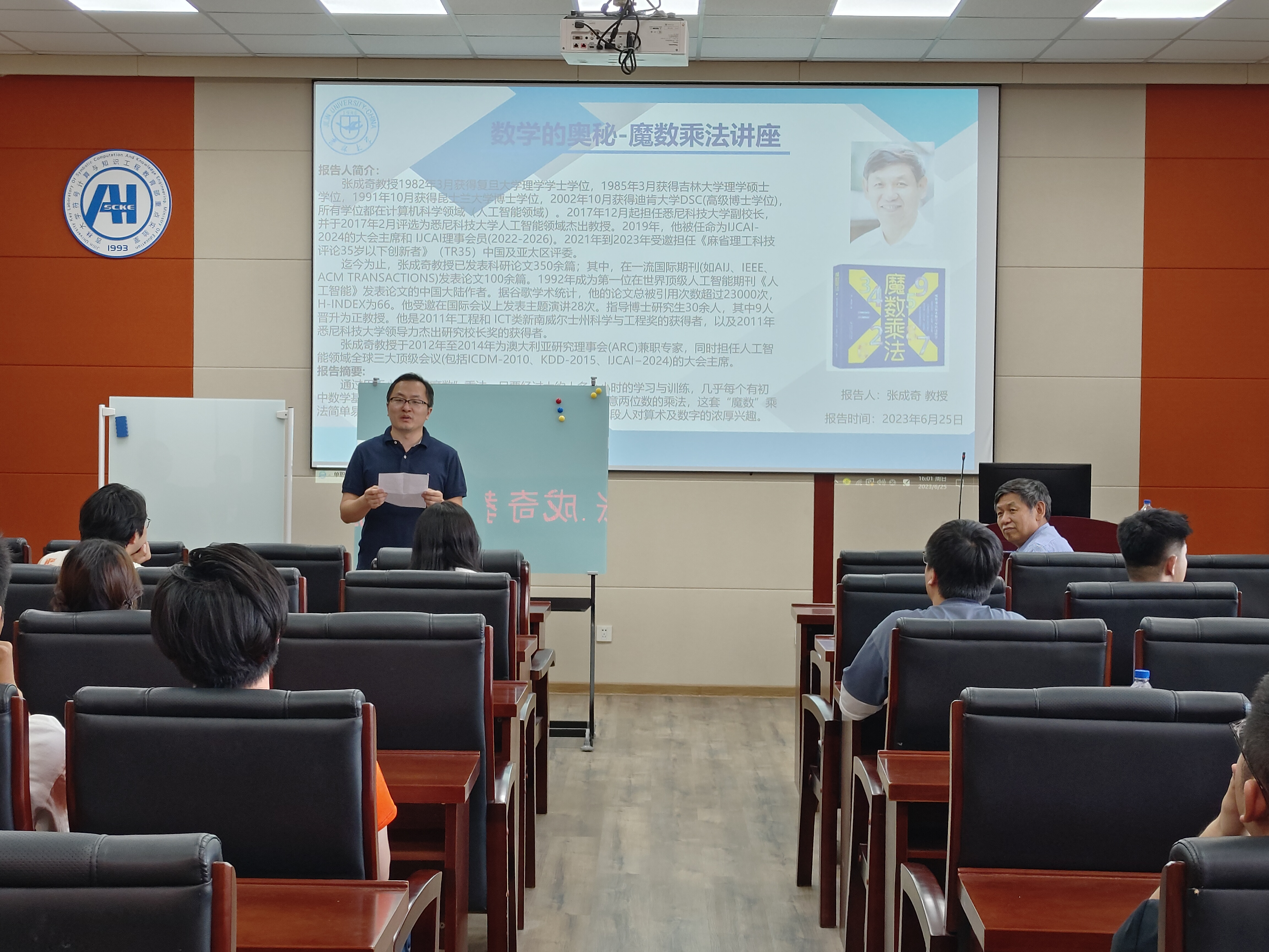 2023年6月25日下午, “数学的奥秘-魔数乘法”学术报告在伟德国际1946集团中心校区王湘浩楼A521成功举办,也是本科生综合素质提升计划系列报告第17场。本次活动以心算“魔数”乘法为主题,特邀悉尼科技大学副董事长、国际知名学者张成奇教授赴公司与同学们一起进行精彩的数学探讨,计算机科学与技术公司党委副书记张达鑫与软件公司副经理周柚老师出席并主持本场活动。