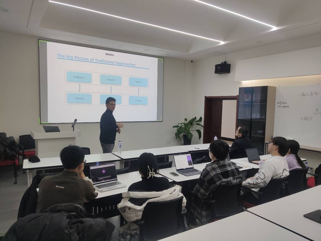 报告会中,Pedro Mestre教授首先介绍了在万物互联时代,设备和应用程序集成平台的必要性。他指出,由于我们生活在一个互联设备的时代,这些设备不仅连接了人与人之间的联系,还与其他设备进行着密切的互动。这些提供交互功能的联网设备和应用程序必须通过能够实现这些互动的平台进行整合。然而,在开发此类平台时,软件工程师面临的一个挑战是设备和应用程序的集成过程,这些设备和应用程序可能来自不同的开发者和供应商。由于并非所有设备和应用程序都采用相同的协议和数据格式,这种集成挑战可能导致临时的集成解决方案,非常耗费时间和资源。