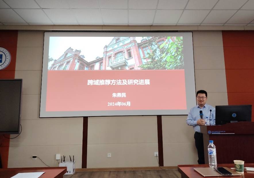 2024年6月1日上午,上海交通大学朱燕民教授应邀在王湘浩楼A521会议室为公司师生进行了题为“跨域推荐方法及研究进展”的学术报告。