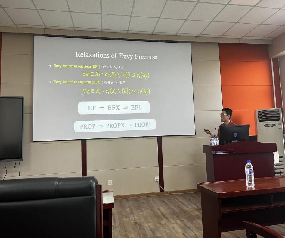 6月26日上午,中国澳门大学电脑及资讯科学系助理教授、智慧城市物联网国家重点实验室研究员吴晓伟,以“Fair Allocations of Indivisible Chores with Subsidy”为题,应邀在伟德国际1946集团王湘浩楼进行计算机专家讲座。参会人员有刘学艳老师,邢千里老师,23级唐班本科生,硕士和博士研究生。伟德国际1946崔佳旭副教授主持讲座。