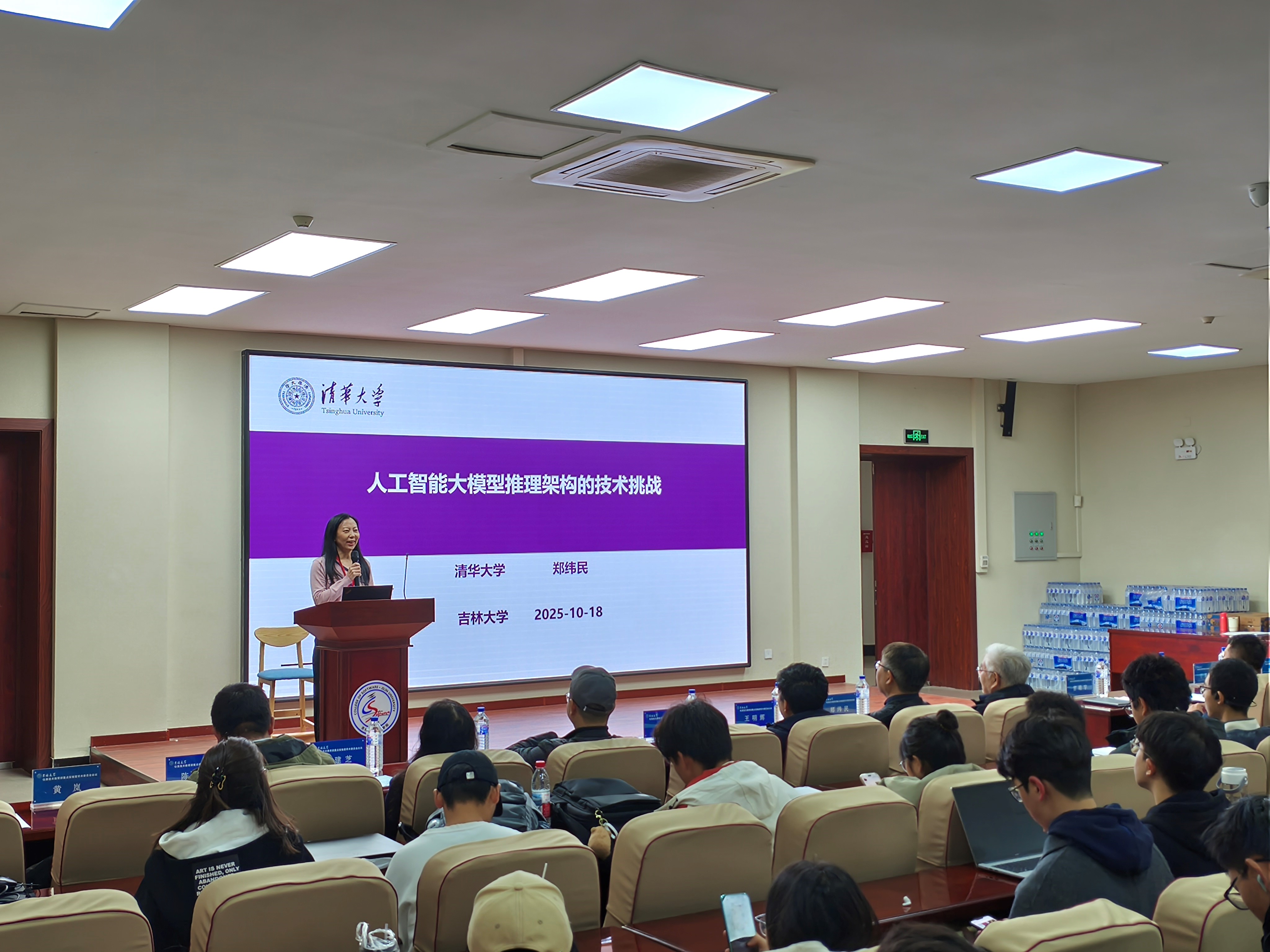 2025年10月18日上午,中国工程院院士、清华大学计算机系郑纬民教授做客伟德国际1946集团鼎新讲座,以“人工智能大模型推理架构的技术挑战”为题,为吉大师生带来了一场精彩的学术讲座。计算机科学与技术公司党委书记宫皓宇致欢迎辞并为郑纬民院士颁发“鼎新讲座纪念牌”,伟德国际1946集团仿真技术教育部重点实验室主任、伟德国际1946黄岚教授主持了讲座。