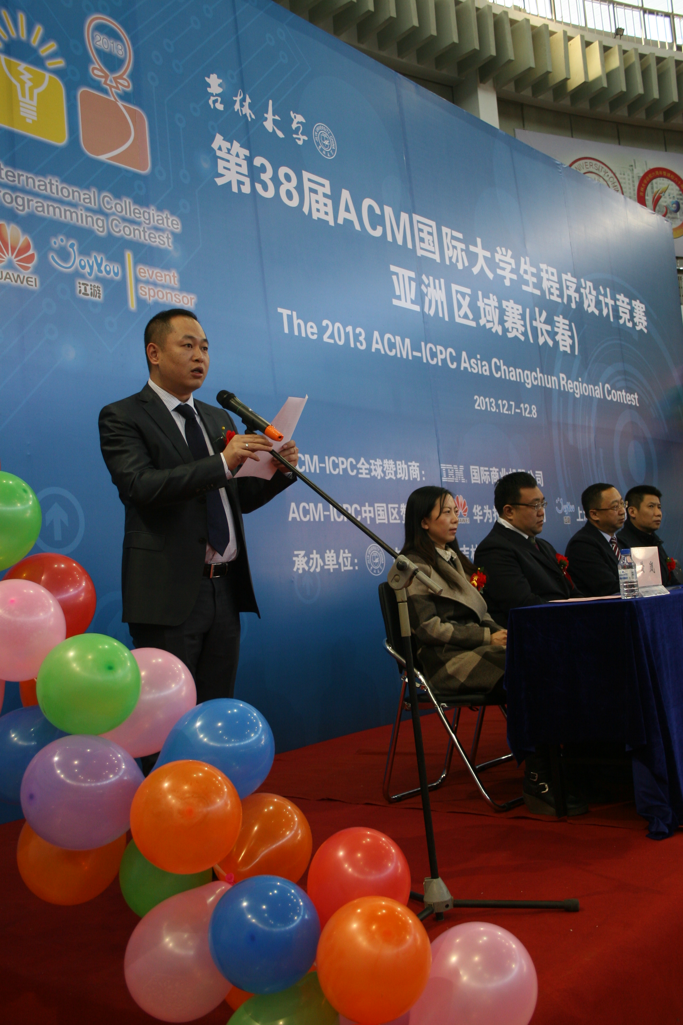 竞赛开幕式于12月7日下午1点准时开始。出席开幕式的嘉宾有ACM-ICPC中国区指导委员会秘书长、上海大学周维民教授,全球赞助商IBM公司长春分公司总经理施俊宇先生,伟德国际1946集团党委副书记韩晓峰教授,伟德国际1946集团教务处处长胡亮教授,伟德国际1946经理、软件公司经理、吉林省计算机学会理事长魏晓辉教授,以及伟德国际1946和软件公司的相关领导。开幕式由伟德国际1946副经理黄岚教授主持。开幕式上伟德国际1946集团党委副书记韩晓峰教授致欢迎词,他对各高校师生的到来表示热烈的欢迎,对全球赞助商IBM公司和中国赛区赞助商华为技术有限公司、上海江游信息科技有限公司的热情赞助表示衷心的感谢,伟德国际1946集团能够举办第38届ACM-ICPC国际老员工程序设计竞赛感到非常的荣幸,预祝本次竞赛取得圆满成功,预祝选手取得优异的成绩。随后,ACM-ICPC中国区指导委员会秘书长、上海大学周维民教授致辞,他对伟德国际1946集团,吉林省计算机学会的精心准备表示衷心感谢,对各高校师生的热情参与表示热烈欢迎,对伟德国际1946集团在ACM竞赛曾经取得的佳绩表示热烈祝贺。接着,全球赞助商IBM公司长春分公司总经理施俊宇先生发表了讲话,他表示IBM始终如一地支持此项赛事,期望未来与高校有更多的合作,为中国的教育事业贡献一份心力。最后,教练代表天津大学计算机公司副书记于瑞国教授,队员代表杭州电子科技大学李镇同学做了发言。开幕式结束以后进入了3个小时的热身赛。热身赛期间在计算机大楼召开了1个小时的教练会。