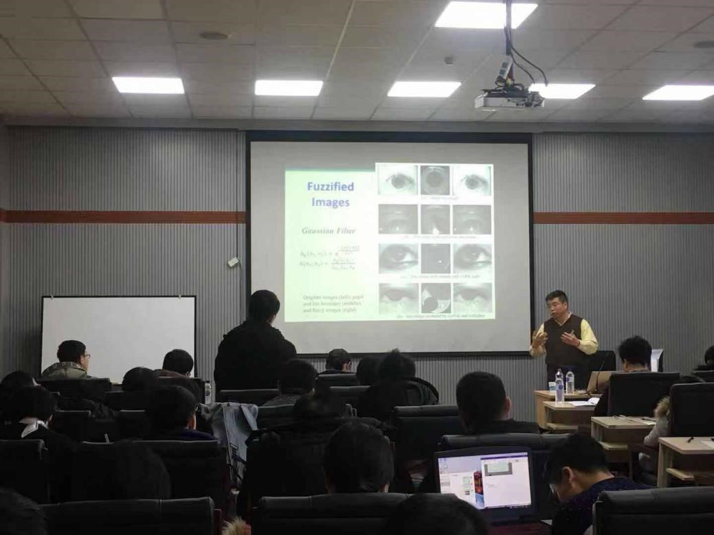 在本次报告中,许东教授从深度学习框架出发,深入浅出的为同学讲解了图像分析在环境污染评估、健康评估舌象分析和虹膜识别等分析与预测问题上的应用。在报告中,许东教授为同学们讲解了这些应用中使用的模型方法,比如将CNN、胶囊网络等深度学习方法与模糊方法、注意机制等人工智能方法相结合等,也讲解了一些应用程序表示问题的公式方法。此外,对于小数据、可解释等问题,许东教授介绍了他们团队的研究工作,并展示了相关的实验结果。在报告过程中,许东教授每讲完一个问题,就停下来和在场的老师同学交流,悉心回答他们提出的问题。本次报告受到了广大师生的热烈响应,近两个小时的学术报告不仅让大家增长了见识,也让大家对于深度学习在图像分析与预测领域上的应用有了进一步的了解与思考。