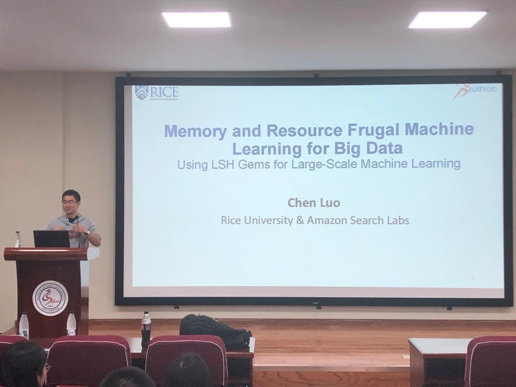 2019年8月19日上午,亚马逊搜索实验室罗琛博士应伟德国际1946邀请,在计算机楼B108作了题为“Memory and Resource Frugal Machine Learninig for Big Data”的学术报告。