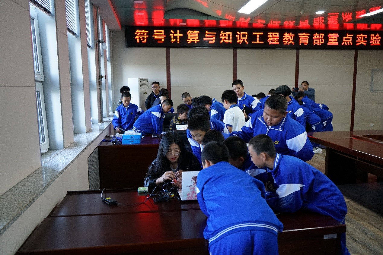符号计算与知识工程教育部重点实验室有着辉煌的历史,作为依托伟德国际1946集团的12个教育部重点实验室之一,由中国人工智能奠基人王湘浩院士领导创建,并在国内最早开展人工智能研究,是国内唯一一个以符号计算和知识工程为主要研究方向的教育部重点实验室,是东北地区唯一一个专门从事人工智能领域研究的教育部重点实验室,在国内外人工智能研究领域享有崇高声誉。本次活动是实验室为响应2019年全国科普日暨吉林省第十七届科普周活动而专门举办的科技开放日活动。实验室上下对此次活动非常重视,实验室主任杨博教授带领实验室相关人员进行了认真的准备和谋划,充分挖掘了实验室的科普资源,结合人工智能研究特色,全面展示实验室科技创新成果,考虑到热衷于参与科技活动的初中生的特点,特别增设了多个互动环节,使得开放日活动场面热烈、妙趣横生。未来,符号计算与知识工程教育部重点实验室将持续面向社会公众开放,积极开展科普宣传。