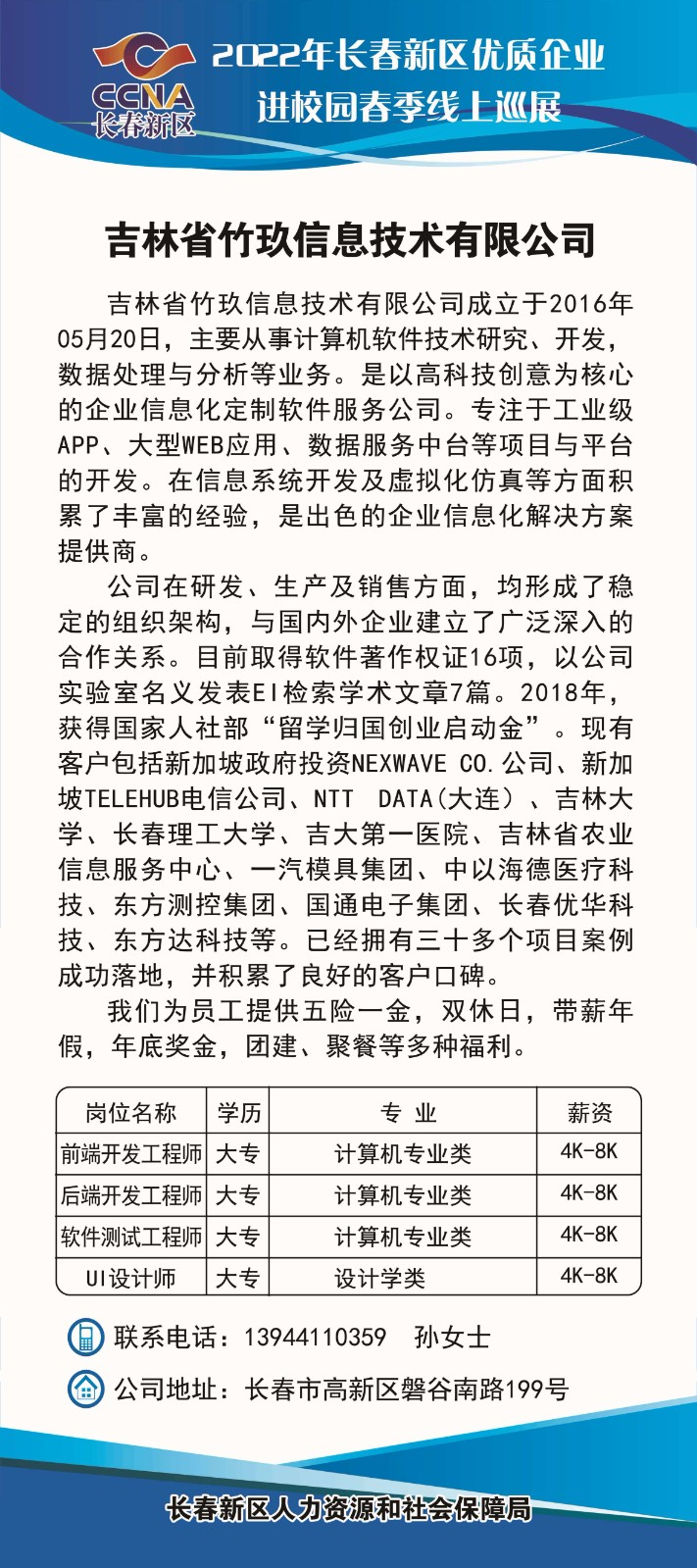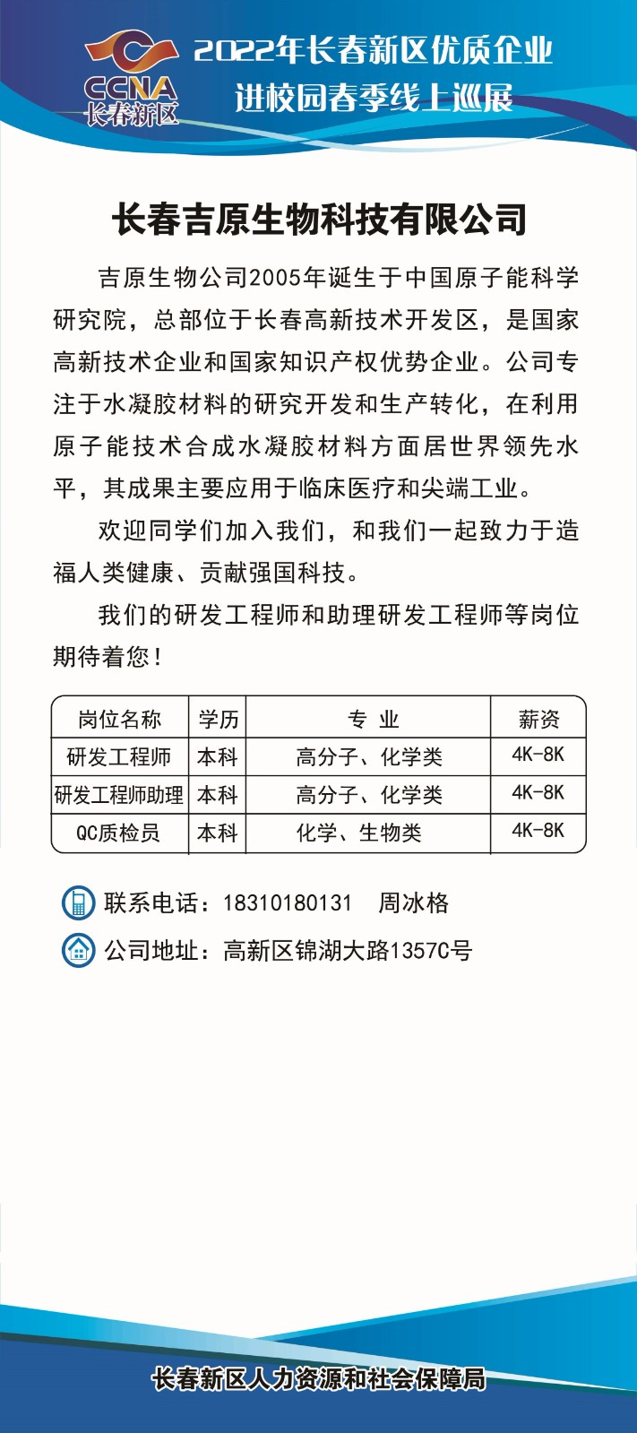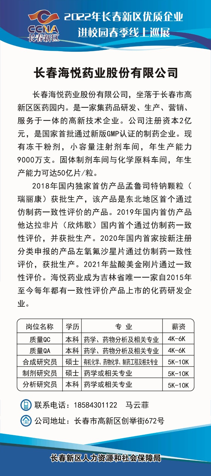 【春季云上招聘月】2022年长春新区优质企业进校园春季线上巡展-第1期
