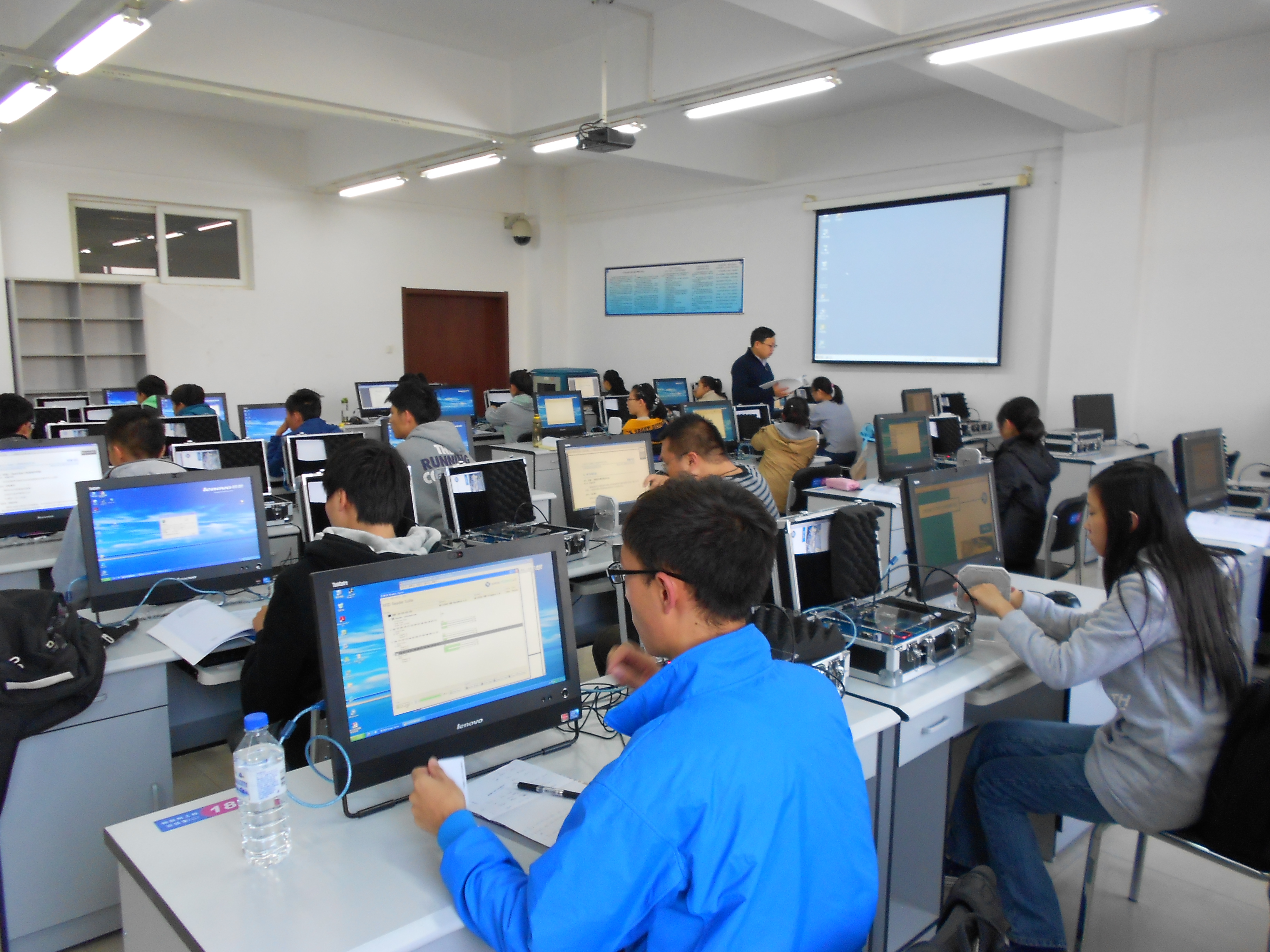 实验室现有设备:联想一体机;服务器;传感器与控制实验箱;无线传感器网络教学实验箱;RFID基础实验箱;ARM9/2440实验教学平台;第三代移动通信系统接入实验平台;智慧家居演示教学实训系统沙盘和RFID图书馆应用系统。实验室主要承担“传感器与控制、无线传感器网络、RFID技术实验、无线网络组网技术实验、嵌入式系统实验、物联网综合应用实验”等实验课的教学任务。实验课均独立设课、单独记学分。这些实验课与物联网工程专业课程体系中专业课程一一对应,实现了对课程体系中核心内容的完整覆盖。通过实验教学培养,使员工能够掌握物联网技术基础,有较为熟练的应用技能,具有较强的物联网综合设计与创新能力。